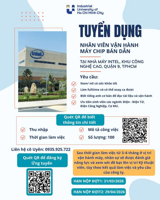 DỰ ÁN INT-TP – TUYỂN DỤNG VỊ TRÍ VẬN HÀNH MÁY