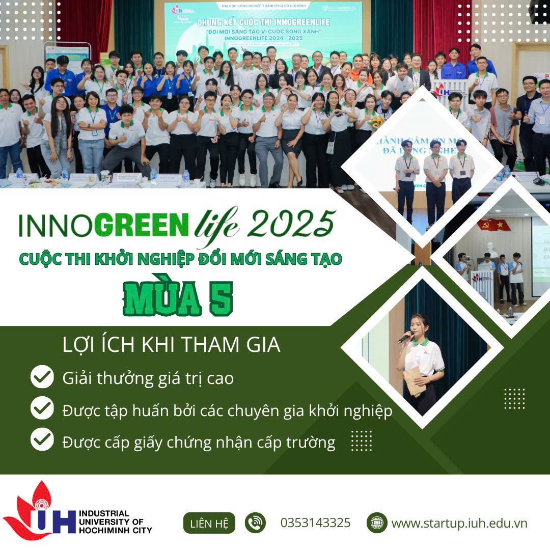 Chung kết Cuộc thi Đổi mới sáng tạo Khởi nghiệp lần 2 "Đổi mới sáng tạo cho cuộc sống xanh INNOGREENLIFE 2022" sẽ được tổ chức: - Thời gian: 7h30 - 11h30 ngày 17/06/2023 - Địa điểm: Hội trường E4, Trường Đại học Công nghiệp Thành...